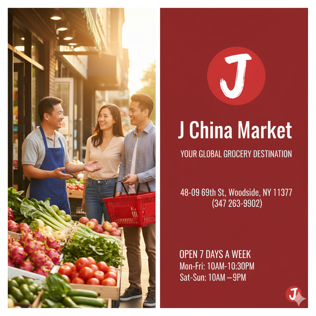 J China Market Inc continues to be a convenient one-stop shop for Woodside residents, offering accessibility, variety, and friendly service right in the heart of Queens.