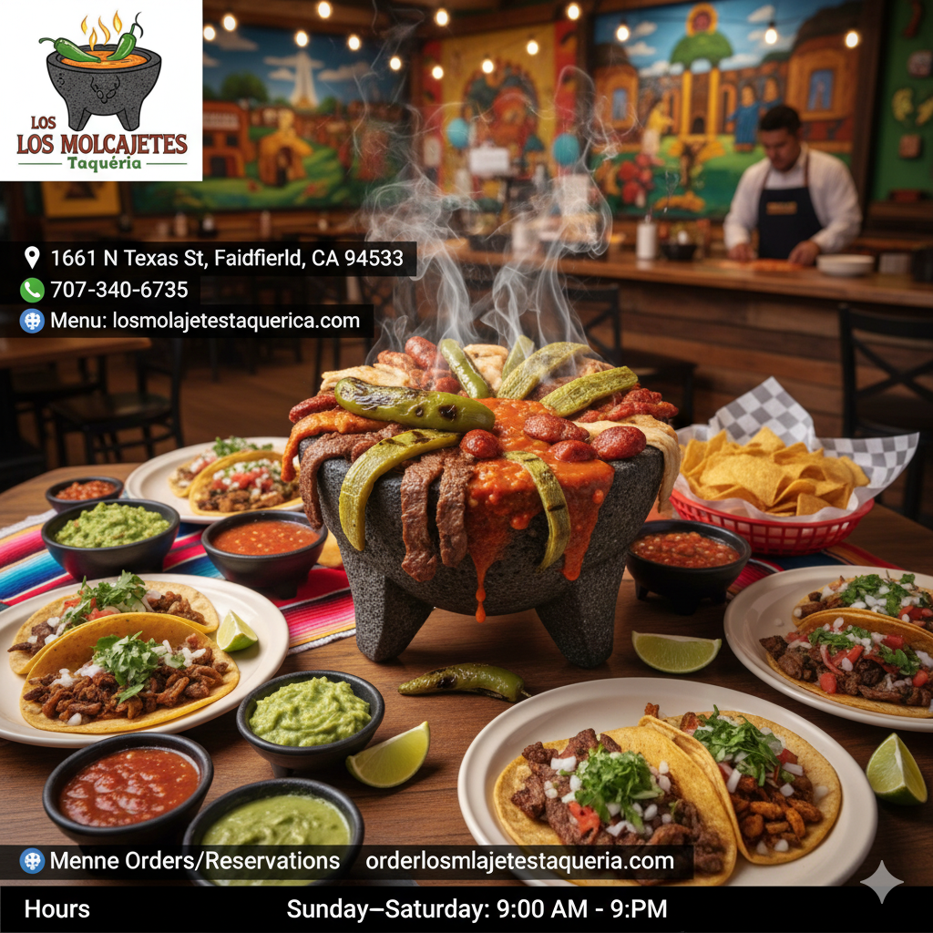 If you’re in Fairfield and craving classic Mexican comfort food, Los Molcajetes Taqueria is a casual spot worth checking out. Located inside El Azteca Restaurant, it serves up favorites like hearty burritos, flavorful tacos, and cheesy enchiladas, all paired nicely with beer and wine for a relaxed dining experience.