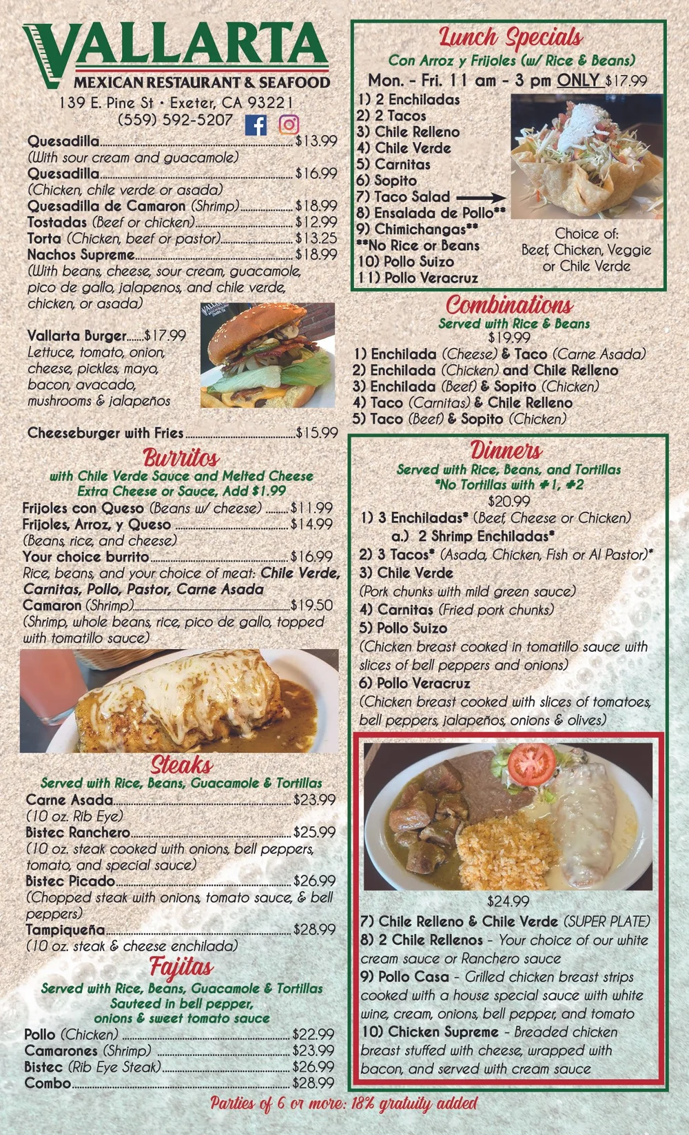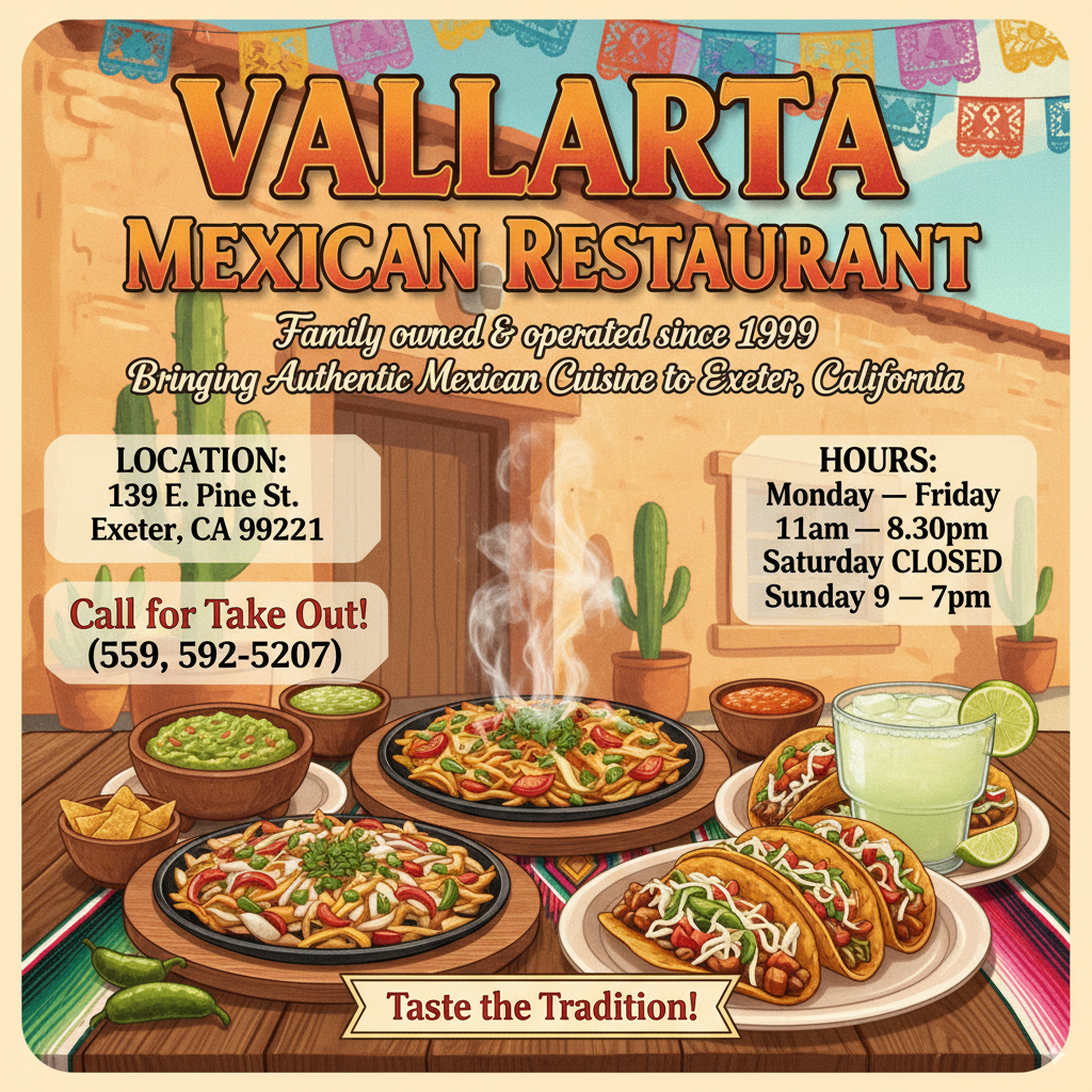 When you step into Vallarta Mexican Restaurant, you’re not just walking into a place to eat — you’re stepping into a family’s dream that began in 1999. Founded in the heart of Exeter, California, Vallarta was born from a simple idea: to bring the warmth, flavors, and traditions of authentic Mexican cuisine to their community.